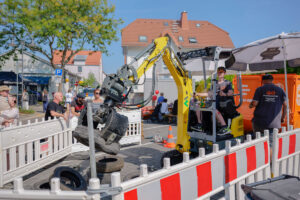 Tolle Bagger- und Gerätespiele für die ganze Familie, Bälle baggern, Schatzsuche, Rüttelplattenrennen und Informationen über Containerdienst, Baumaschinenvermietung und Receycling.