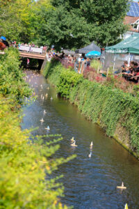 Neben der Darstellung von Mühltaler Unternehmen und der Präsentation von Produkten und Dienstleistungen war das Fest am Modauufer vor allem eine Veranstaltung, bei der Kinder und Familien voll auf ihre Kosten kamen. Kinderschminken, Tattoos, Riesenseifenblasen, Baggerfahren, Gewinnspiele und natürlich die Modauregatta, bei der sich die Kinder mit einem selbst bemalten Boot beteiligen konnten, waren die Highlights der Veranstaltung. Dabei gab es gleich doppelt Preise. Sowohl die schnellsten Schiffchen als auch die schönsten Schiffchen bekamen tolle Preise, darunter Einkaufsgutscheine vom Paper-Shop und von der Metzgerei Göbel. Das schönste Boot gewann einen Einkaufsgutschein im Wert von 100 Euro. Da lässt sich doch der Grill einer tollen Geburtstagsparty oder eines anderen Events mit leckeren Produkten aus der Mühltaler Metzgerei Göbel bestücken.