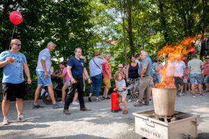 Gestartet wurde pünktlich um 11 Uhr, und schon um 11:15 Uhr standen, wie vorgesehen, die lokale Prominenz, allen voran Bürgermeister Niels Starke, Parlamentsvorsitzender Rainer Steuernagel, Ortsvorsteher Mathias Erzgräber und Landtagsabgeordneter Peter Franz, bereit, die Veranstaltung offiziell zu eröffnen. Holger Maier und Markus Winkler begrüßten die Gäste mit kurzen Worten und übergaben das Wort an die Herren aus der Politik, die treffende und viele positive Worte fanden, um die Aktion Modauuferfest zu beschreiben. Es gibt kein vergleichbares Fest im Landkreis, so der Tenor, das Gewerbe und Gastronomie auf diese Art und Weise verbindet. „Obwohl wir 2022 dachten, die zweite Auflage des Modauuferfestes wird entspannter, weil die Organisation mehr zur Routine wird und man niemandem mehr erklären muss, was der Sinn und Zweck dieses Events ist, waren die Wochen vor dem Fest doch wieder mit viel Action in Vorbereitung, Abstimmung, Organisation und Bekanntmachung verbunden. Aber ich denke, es hat sich gelohnt“, so Holger Maier, der nicht nur für die Organisation als Gewerbevereinsvorstandsmitglied, sondern auch für das Marketing als Herausgeber der Mühltalpost verantwortlich war.