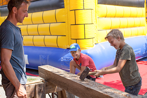 Die Spielstationen, es gab zusätzlich zum Nagel-Einschlagen die Möglichkeit zum Dosenwerfen und eine Fußball-Torwand, wurden von Michael Bernhardt betreut. Für die Kleinen gab es zusätzlich eine tolle Hüpfburg und die Möglichkeit, geschminkt zu werden oder sich ein cooles Kids-Tattoo aufmalen zu lassen.