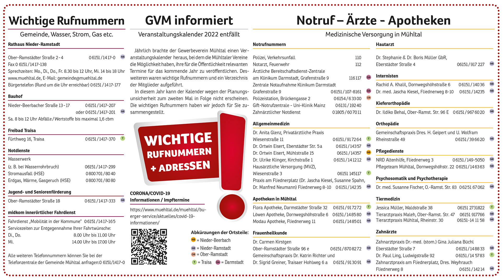 Läuft alles normal, liegt dieser beliebte Jahreskalender im Januar der Mühltalpost bei. In diesem Jahr konnte er wegen der Planungsunsicherheit vieler Vereine zum zweiten Mal in Folge nicht erscheinen. Die wichtigen Rufnummern haben wir jedoch für Sie zusammengestellt und stehen hier bereit.